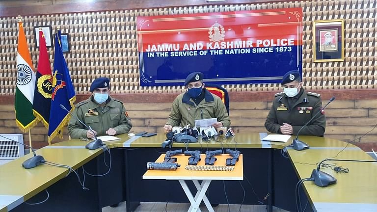 Two pistols along with two pistol magazine and 30 pistol bullets were recovered from them on the spot, police said, adding upon further questioning, “incriminating material, arms and ammunition including two pistols, six pistol magazines, 69 rounds, two pistol silencers were recovered from their hideout in Srinagar City.
