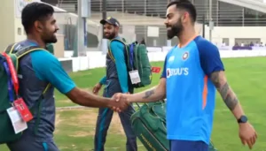 Dubai :- 25 Aug, The Indian cricket team has landed in Dubai for the Asia Cup 2022 which starts on August 27. The Rohit Sharma-led side will begin its campaign against arch-rivals Pakistan cricket team on August 28. All eyes are on that clash. Ahead of the big match, players from both the teams met each other in Dubai. Players from the Afghanistan side were also present. In a video uploaded by the BCCI on its social media handles, the likes of Hardik Pandya, Yuzvendra Chahal could be seen chatting with the likes of Rashid Khan and Mohammad Nabi. However, the focus was on Virat Kohli as he met with Pakistan captain Babar Azam.