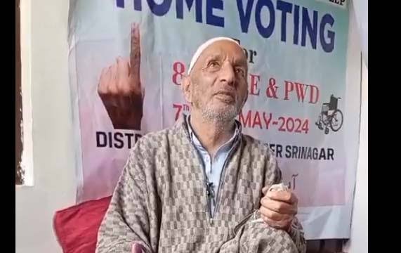 Rather, 75, hailing from the Dara area of the Hazratbal assembly segment in Srinagar district became the first person in the Kashmir Valley to cast his vote through the home voting facility, an official of the District Election Office, Srinagar, said.