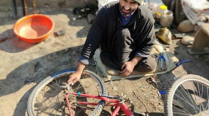 With paralyzed legs, Pulwama man starts cycle repairing to earn livelihood