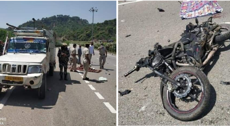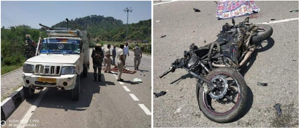 Reports reaching GNS said that today afternoon one Motorcycle (JK 02BV 5895) was on way towards Ban Toll Plaza Nagrota to Jammu and one Mahindra Tata mobile (JK02BR 0887) in opposite wrong direction with high speed had a head-on-collision near Zambu Zoo Jagti on Jammu-Srinagar highway. “Due to high speed, the motorcyclist namely Reyaz Ahmed son of Sher Mohd of Ban Nagrota and pillion rider Shusheel Sharma of Bain Bajalta, both were working in Ban Toll Plaza died on spot”.