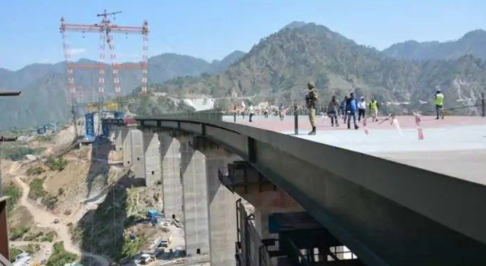 The bridge, which has a central span of 467 metres, is being built at a height of 359 metres from the bed level. The height of Qutab Minar in Delhi is 72 metres and that of the Eiffel Tower in Paris is 324 metres. “This is the tallest railway bridge in the world and the maximum designed wind speed for the bridge is 266 kmph,” a senior government official said.